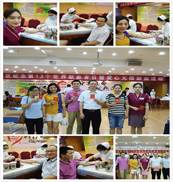 7月12日,为积极响应广州市天河区无偿献血工作委员会举行的“天河区纪念第13个世界献血者日暨爱心无偿献血活动”的号召,圣丹福现代医院特组织多名员工前往区献血点进行爱心无偿献血。