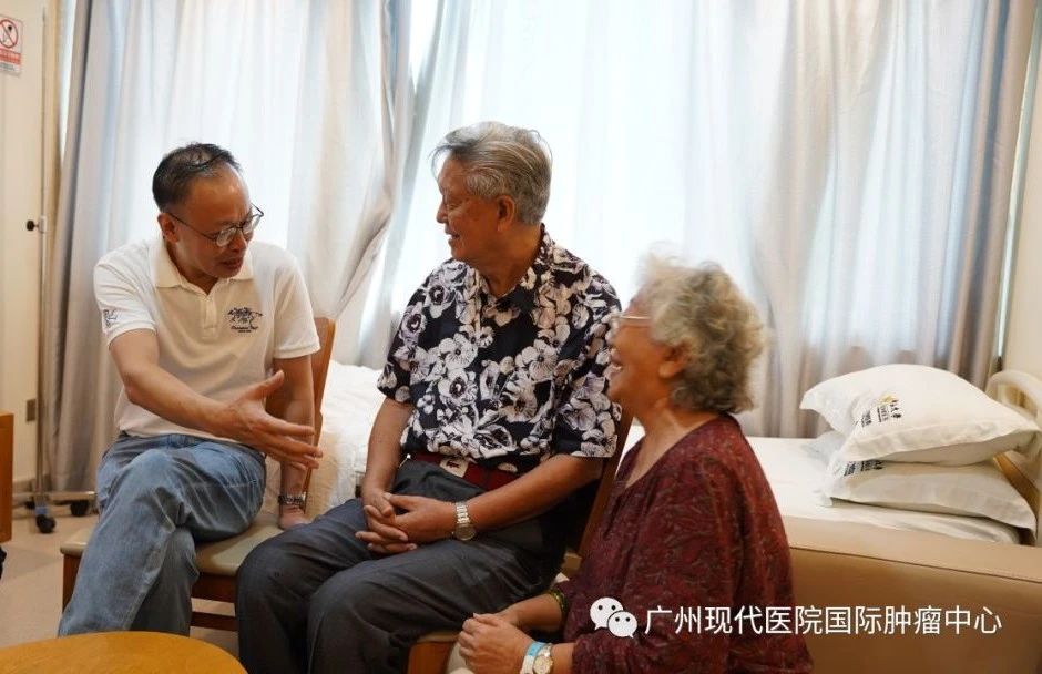 2023年9月25日上午,广州现代肿瘤医院王怀忠院长,肿瘤科首席专家宋士军教授,外科主任焦焱,客服部总监周小萍等一行,看望入院患者王优华阿姨一家人。